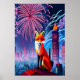Roter Fuchs und Feuerwerk | AI Art Poster