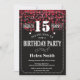 Roter Glitzer 15. Geburtstag Einladung. Weiße Typografie. Hintergrund Schwarz-Weiß-Chalkboard.Kindergeburtstag. Männer oder Frauen zum Geburtstag. Kinder Junge oder Mädchen Lady Teenage Teenage Bday Einladen. 13. 15. 16. 18. 20. 21. 30. 40. 50. 60. 70. 80. 90. 100. Jedes Alter.