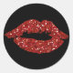 Roter Glitzer Kiss auf schwarzen Hintergrundkleber Runder Aufkleber