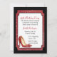 Chic Ladys Geburtstagsfeier in Weiß mit einem roten Glitzer und schwarzem Rahmen. Die Grafik eines Paares von roten Glitzer Stiletto hohen Absätzen, schmücken die untere links Ecke der Einladung. Personalisieren Sie den gesamten Text für Ihre kommende Veranstaltung.