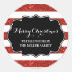 Frohe Weihnachts-individuelle Name-Aufkleber in festlich roten Glitzer Effekt Streifen Muster mit schwarz-weiß Details.