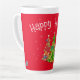 Red Happy Ferien mit whimsical dekoriert Bäume und Schneeflocken Latte Tasse. Diese charmante und festliche Tasse eignet sich perfekt für die Saison und für Feiertage auf Zuhause oder im Büro. Design von Inge Lewis, großartiges Geschenk für Familie oder Freunde. Weitere passende Artikel finden Sie im Online-Shop ingeinc.com.