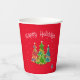 Red Happy Holidays mit skurrilen dekorierten Bäumen und Schneeflocken Papierbecher. Diese bezaubernden und festlichen Tassen eignen sich perfekt für Feierlichkeiten auf der Zuhause oder im Büro. Design von Inge Lewis, großartiges Geschenk für Familie oder Freunde. Weitere passende Artikel finden Sie im Online-Shop ingeinc.com.