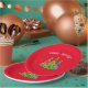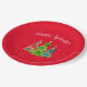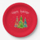 Moderner und festlicher Red Happy Holiday Text mit Kalkbäumen und Schneeflocken Papier Teller. Ideal für Weihnachtsfeiern. Design von Inge Lewis. Weitere passende Produkte finden Sie im ingeinc.com Store / Boutique.