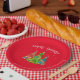 Roter glücklicher Urlaubstext, Sterne, Bäume, mode Pappteller