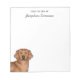 Desteis originelle Cartoon-Illustration einer mahagonifarbenen rot-rötlich-braun Farbe Golden Retriever züchten Hund Kopf nah-up. Das Hundeporträt wird in der links unteren Ecke platziert. Es gibt auch zwei personalisierbare Textbereiche oben, die jetzt lauten: "From the desk of" zusammen mit einem personalisierbaren Namen.