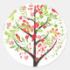Rot-grüner Baum und niedlicher Vogelaufkleber mit einem farbenfrohen, roten, grünen Baum mit einer Variation von Blätter und Vögeln.
