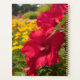 Eine kleine Gruppe von schönen roten Hibisken Blume in einem sonnigen Garten.