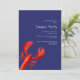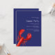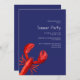 Eine elegante Einladung für eine nautische Küste am Meer Sommer Party, Strand Party oder Meeresfrüchte Party. Klassisch marineblau und ein großer roter Hummer als Dekoration. Personalisieren und fügen Sie Ihre Party-Details, Informationen. Weißer Text.