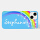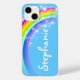 Einzigartig entworfene, hellblaue und farbenfrohe Regenbogenhülle. Personalisieren Sie mit Ihrem eigenen Namen. Original Art a and design von Sarah Trett