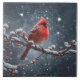 Roter Kardinal auf Baumzweig im Schnee Fliese