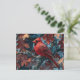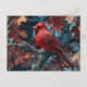 Ein lebendiger, roter Kardinal liegt auf einem Ast, umgeben von bunten Herbsteichen-Blätter. Das faszinierende Blattwerk und die ausgefeilte Textur schaffen eine atemberaubende Naturlandschaft, die die Schönheit des Vogels und die saisonale Atmosphäre zeigt.
