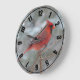 Magische Winterszene mit einem roten Kardinal auf einem Ast, während der Schnee herumfällt.