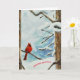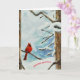 Originelles Kunstwerk mit meinem Originalfoto eines Roten Kardinals, platziert in einer schneebedeckten Waldszene mit Bäumen; mit einer impressionistischen Maltechnik für ein künstlerisches Retroaussehen. Die Vorderseite der Karte Staaten "Weihnachten Grüße!" und das Innere der Karte Staaten "Senden warme Gedanken und wünschen Ihnen Komfort, Ruhe und Freude an diesem Weihnachtsfest. Frohe Weihnachten!" Diese hübsche und festliche Karte würde die Saison für jeden aufheitern, besonders für diejenigen, die Vintage oder Retro-Designs mögen.