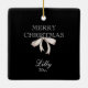 Schöner roter Kardinal mit Kiefernkegel und JOY PEACE LIEBE Typ auf der Vorderseite und Name und Jahr auf der Rückseite, Keramik Ornament.