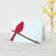 Roter Kardinal, der auf einem Baum-Niederlassungs-Illustrations-Set gegen einen blauen Himmel sitzt. Kann als Sportmaskottchen für Highschool, Uni oder Proteam auch verwendet werden. Gehen Kardinäle!