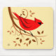 Roter Kardinal auf Zweig-Wirbel mit Blätter in Herbstfarben und anpassbarem Hintergrund