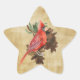 Roter Kardinal Pine Cones Weihnachtssternaufkleber mit einem rustikal braunen Textur Hintergrund mit Kiefernzapfen und einem roten Kardinal. Dieser sternförmige Rot-Kardinal-Aufkleber passt zu unseren Red Kardinal Pine Cones Ferienkarten, Porto und Rücksendeadressen-Aufklebern!