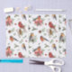 Bezauberndes Weihnachtswaschpapier mit Aquarellbildern von roten Kardinälen, Rotkehlchen auf Pinecones mit weißen und roten Bögen und heiligen und Tannen, die sich durch das ganze Muster wiederholen.
