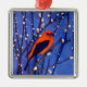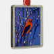 Reizende Weihnachtsverzierung in tiefem Blauem und rot. Ein heller roter Kardinal sitzt auf einer Pussyweideniederlassung gegen einen tiefen blauen Himmel