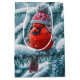 Roter Kardinal-Vogel mit Wintermütze Mittlere Geschenktüte