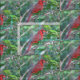 Ein mit Ziegeln gedeckter Entwurf, der eine Fotografie eines hellen roten männlichen Kardinalsvogels kennzeichnet.