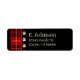 Rustikales Kabinendesign mit schwarzem Adressetikett mit kariertem Streifen in Rot, Schwarz und Creme und Pfotendrucken. Das Rot ist wechselbar! Tauschen Sie das Rot für jede Farbe aus, die Sie bevorzugen.