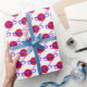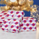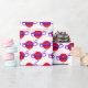 Fett roter Knopf mit lila Gewindebogen auf Weiß. Die Hintergrundfarbe kann bearbeitet werden.