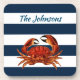 Rote Krabbe über blaue Streifen; perfekt für nautische oder Küstenaussehen. Passen Sie auf Ihre Wünsche ein.