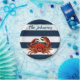 Rote Krabbe über blaue Streifen; perfekt für nautische oder Küstenaussehen. Passen Sie auf Ihre Wünsche ein.