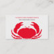 Red Crab Seafood Schwarz-weiß Simple Nautical Business Card Red Crab Visitenkarte Seafood Logo einfach in Vorlage Füllen Einfach Ihr Unternehmen Informationen. Blue Crab Logo Karte Design für Restaurant, Koch, Geschäft, Fischfirma, Fischwirtschaft, etc. Anpassbare Farben.