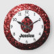 Roter Ladybug Ladybird Glitzern Individuelle Name Große Wanduhr