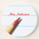 Roter Lehrer-Bleistift auf gezeichnetem Papier mit Sandstein Untersetzer