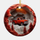 Bringen Sie Ihrem Weihnachtsbaum eine Touch rustikalen Charmes mit diesem wunderschönen Ornament mit einem klassischen roten LKW in einem verschneiten Wald. Die aufwändigen Details und die lebhaften Farben machen es zu einem herausragenden Stück.