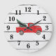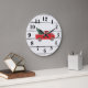 Roter LKW mit rustikaler Baumbahn, große Uhr