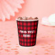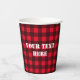 Roter Lumberjack Büffel karierte Papiertassen. Verfügbares Party mit karierten Mustern. Doppelter Druck personalisiert mit dem Text. Spaß für Geburtstag, GRILLEN, Hochzeit, Verlobung, Jubiläum, Office Party und mehr. Ideal für Kaffee und andere Getränke. Rot und Schwarz oder benutzerdefinierte Farbe.