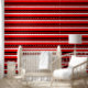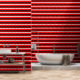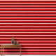 Rote und tiefe rote Streifen Linien mit dünnen schwarz-weißen Linien zwischen geometrischem Oberflächenmuster, nahtlos