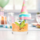 Ein niedlicher mit Augen Baumfrosch sitzt auf drei Blätter vor einem lila Lichtklima