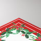 Der rote und weiße Hintergrund mit Poinsettia grenzt an einen Roten Spottdrossel auf einem Zweig mit Winterbeeren und schafft ein einzigartiges, klassisches, zeitloses Design!