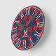 Roter Mohn-Blume und Navy Blue| Monogramm Runde Wanduhr