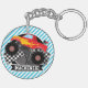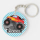 roter Monster-Lkw; karierte Flagge; blaue Streifen Schlüsselanhänger