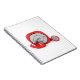 Roter MP3-Player und verdrahtete Kopfhörer Notizblock