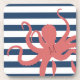 Der moderne Untersetzer im trendigen Strandstil besticht durch einen roten Oktopus vor weißem und marineblau gestreiften Hintergrund. Sie können diesen Untersetzer mit Ihrem ersten Schritt personalisieren.