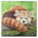 Aquarellmalerei eines roten Panda auf einem alten Baumstamm.