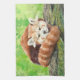 Aquarellmalerei eines roten Panda auf einem alten Baumstamm.