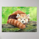 Aquarellmalerei eines roten Panda auf einem alten Baumstamm.