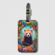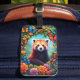 Ein roter Panda liegt inmitten eines farbenfrohen Gartens, umgeben von lebhaften Blume und schmetternden Schmetterlingen.