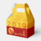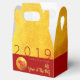 Original Gastgeschenk Box (Gable Model) für The Chinese New Year of the Pig 2019. Goldener und transparenter Hintergrund mit rotem chinesischem Paperschnitt eines Schweins in einen goldenen Kreis + anpassbare Texte (vorne) und Nachricht + Familienname (hinten). Sie können ohne weiteres Schriftart, Farbe, Größe und Position sowie Hintergrundfarbe (hier dunkelrot) ändern, indem Sie auf die Schaltfläche Anpassen klicken. Passende Papierserviette, handwerkliche Produkte, Einladungen, Grußkarte und vieles mehr... Perfekt für Chinesisch Neujahr des Schweins 2019.— "Das Schwein (豬) ist das zwölfte und letzte Zeichen der Irdischen Branchen (亥). Im kontinuierlichen Sexagenenzyklus entspricht jedes zwölfte Jahr Hai und wird gemeinhin als "Jahr des Schweins" (豬 年) bezeichnet. Es gibt fünf Arten von Schweinen, die nach den chinesischen Elementen benannt sind. In der Reihenfolge sind sie: Metall, Wasser, Holz, Feuer und Erde. Im japanischen Zodiac und im tibetischen Zodiac wird das Schwein durch das Schwein ersetzt[1]. Im Dai-Zodiac wird das Schwein durch den Elefanten ersetzt. Im Zodiac Gurung wird das Schwein durch das Hirsch ersetzt. (..) Man kann sagen, dass Personen, die innerhalb dieser Zeitbereiche geboren sind, im "Jahr des Schweins" geboren waren, und dabei auch das folgende Elementarzeichen tragen: 10. Februar 1923 - 29. Januar 1924 = Wasserschwein, 4. Februar 1935 - 23. Januar 1936 = Holzschwein, 2. Januar 19 47 - 9. Februar 1948 = Feuerschwein, 8. Februar 1959 - 27. Januar 1960 = Erdschweine, 27. Januar 1971 - 14. Februar 1972 = Metallschwein, 13. Februar 1983 - 1. Februar 1984 = Wasserschwein 31. Januar 1995 - 18. Februar 1996 = Holzschwein, 18. Februar 2007 - 6. Februar 2008 = Waldschweine, 5. Februar 2019 - 24. Januar 2020 = Erdschweine, 23. Januar 2031 - 1 20 032 = Metal Pig (...)" Wikipedia