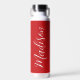 Roter Personalisierter Name in Chic White Script Trinkflasche