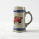 Ein kleiner roter Rennwagen, der über den Stromkreis beschleunigt.